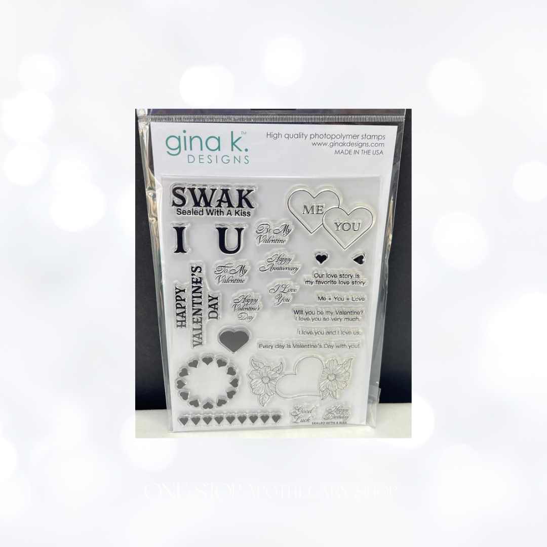 Gina K Designs SEALED WITH A KISS Hearts Valentines Day Love 6x8 Rubber Stamps