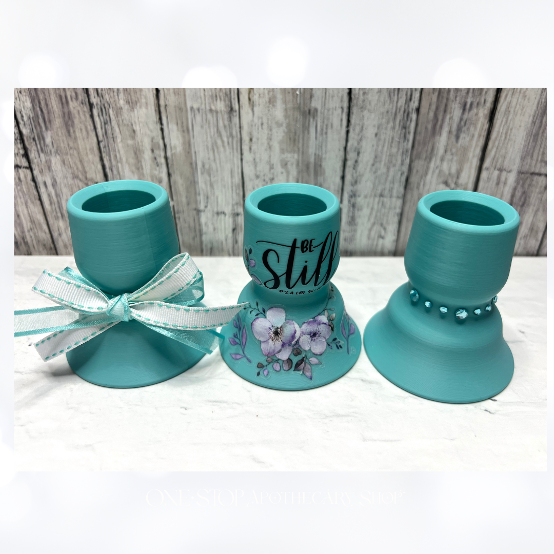 This product has a tapered area in the middle of the holder. This makes it great for customizing your holder with ribbon, pearls, rhinestones, and even rub ons. (See photo #2)