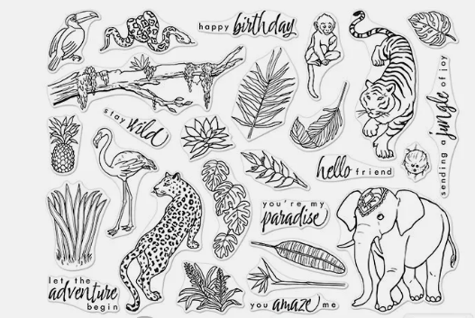 Hero Arts Monthly Kit JUNGLE ANIMALS June 2019 Rubber Stamps & Dies