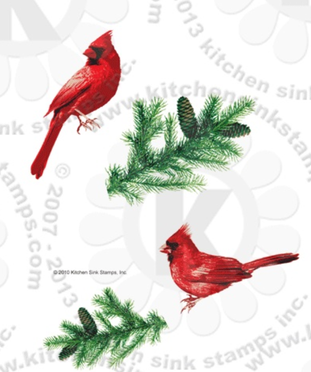 Kitchen Sink WINTER CARDINALS Christmas Rubber Stamps